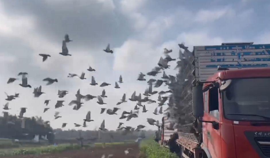 50公里训放开笼了,赛鸽们向着家的方向奋力飞去。