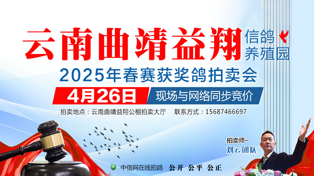 云南曲靖益翔信鸽养殖园2025年春获奖鸽4月26日同步拍卖会